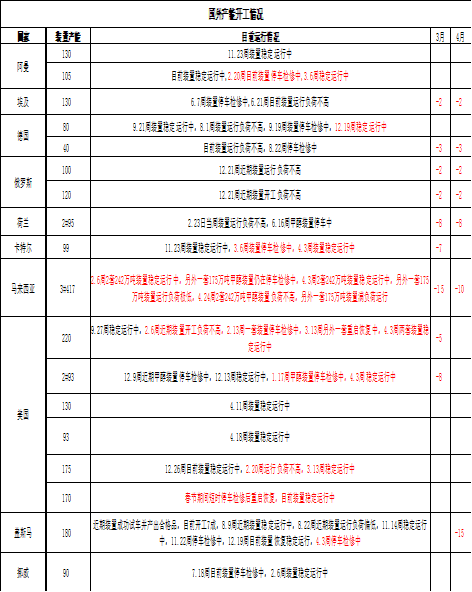 美国盖斯玛180万吨装置近期停车检修中,了解到货源会优先选择去欧美地区,预计近期对进口量暂无较大影响,马油180万吨的装置已投产。