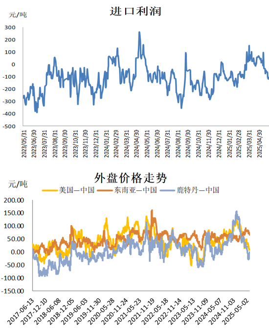 库存方面,目前港口库存已去库至历年低位水平,但随着后期进口量的回升,预计港口库存将进入累库通道。